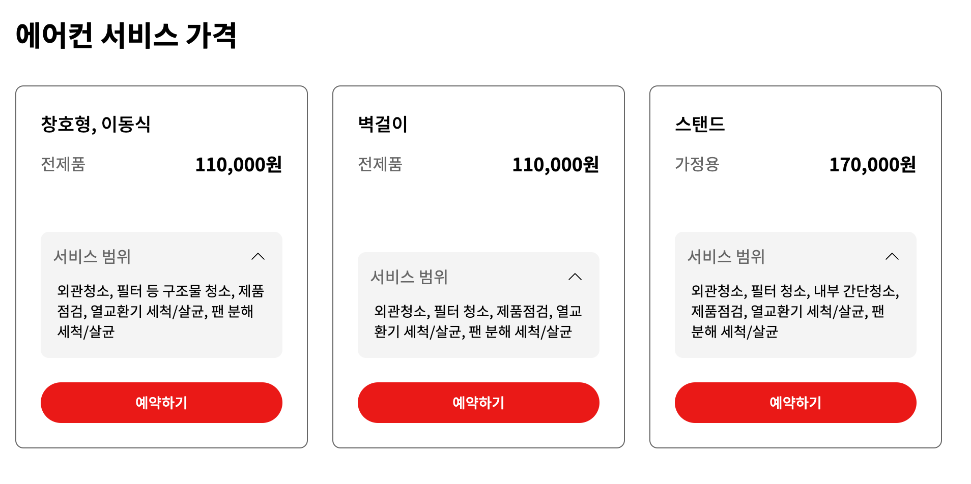 대표적인 전문 에어컨 청소 서비스를 살펴보면