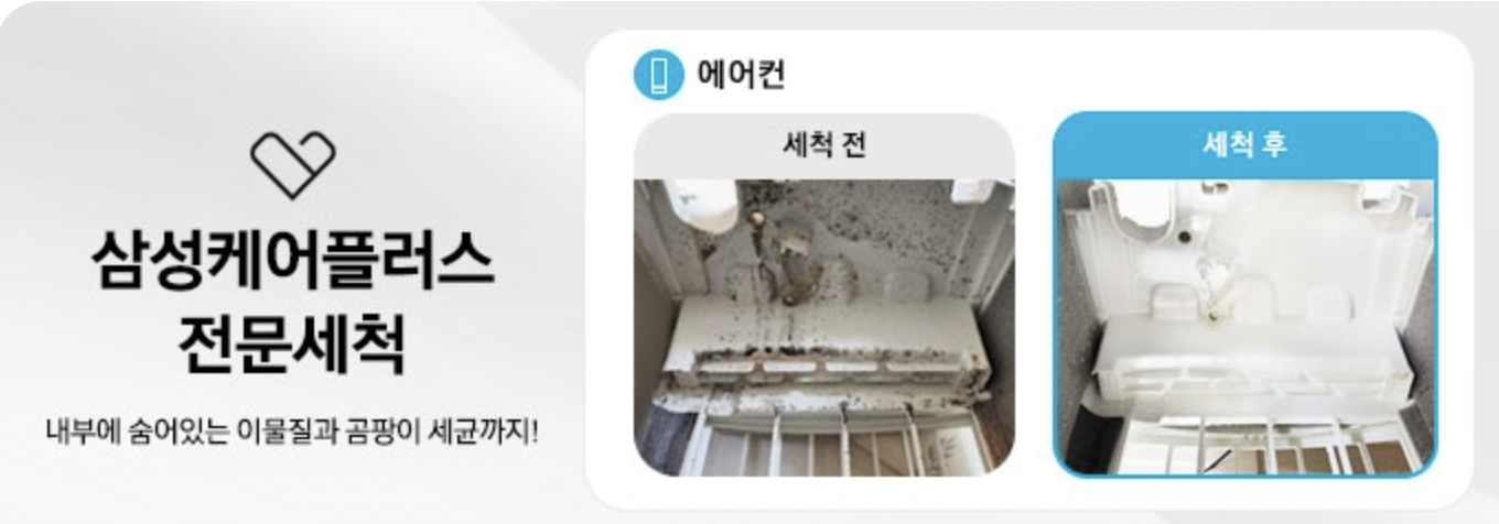 또한 삼성케어플러스 가입을 통해 1회성이 아닌 3년 또는 5년의 가전케어를 받을 수도 있습니다.